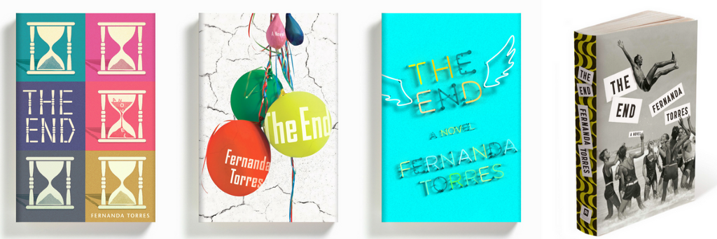 The author was hoping for more tension between the title and the content. ‘The book,’ she reminded us, ‘has a very heavy title, but it is full of sex, humor, and bad behavior.’ She sent over some vintage carnival photos. She said, ‘I like the idea of having crazy, smiling people, at the peak of their happiness confronted with the fact that they will all face THE END.’ We were worried [using photography on the actual cover] might be too specific. It’s no fun for the reader when the cover designer shows you what fictional character(s) looks like. We turned up the photo of the young, handsome friends frolicking on Copacabana Beach that ended up on our final cover — a solution we really love.