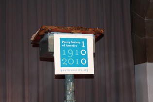 New York City cultural affairs Commissioner Kate Levin graced the stage early to proclaim (per Mayor Bloomberg degree) October 12, 2010 PSA day. No sooner had the event begun to feel like a benefit than Billy Collins appeared at the podium to roaring applause, as charming as his poetry and with a voice oddly and soothingly like Kevin Spacey’s. Listening to him read (including his own “Forgetfulness” and hilarious “Another Reason Why I Don’t Keep a Gun in the House”) was like movie-watching with someones who have already seen and loved the film; they’re leaning forward, silently mouthing, starting to laugh before the jokes are delivered.