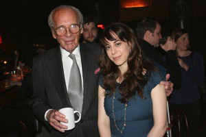 A final thank you from Oskar Eustis and a shouted thank you from the audience to Lewis himself ended the night, and the room was filled with the sound of congratulatory pats on the back and air kisses. I was pinned against the bar by bodies and waves of perfume, left to survive only on complimentary wasabi peas. Fortunately I had a companion in my struggles, novelist and LQ contributor Beth Raymer, author of Lay the Favorite. We waited and chatted at the bar until the crowds emptied out and we could escape. Walking past the knot of LQ editors at the door, I heard the after party was just down the street, but my own celebrity felt thin enough as it was.