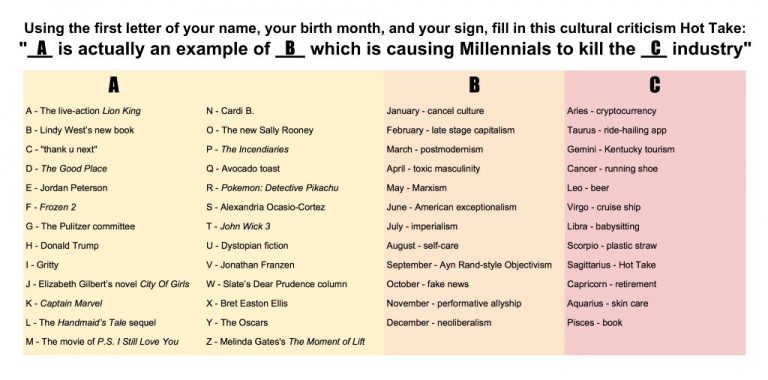 Planning to write more cultural criticism in the new year? We’ve made it easy for you