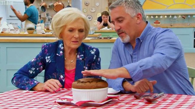 Refreshingly, everyone seems to get along: the contestants, the hosts, the judges. A loving camaraderie develops between the bakers as they bolster one another from one stressful challenge to the next. If one baker is running low on time, a fellow baker will come to her aid. At the end of each episode, when a baker is selected to go home, the whole crew comes in for a hug. Many Brits seem to appreciate the show’s tenderness, too. Noel Murray writes in the New York Times that “fans have clung to the show as a model of what the United Kingdom can be — with country grandmas and big city immigrants sharing hugs and recipes in a makeshift kitchen in a white tent in a field.” The show is (pardon the pun) undeniably sweet in this way, like if you populated Hell’s Kitchen with the cast of Little House on the Prairie. (Confession: I have never actually seen Hell’s Kitchen, but have gathered through cultural osmosis that it’s aggressive. I imagine each episode is just Dwayne the Rock Johnson hurling a chair at a plate of spaghetti.) I honestly can’t imagine America producing anything like it. If we tried, there’d be a nipple-slip by season two.