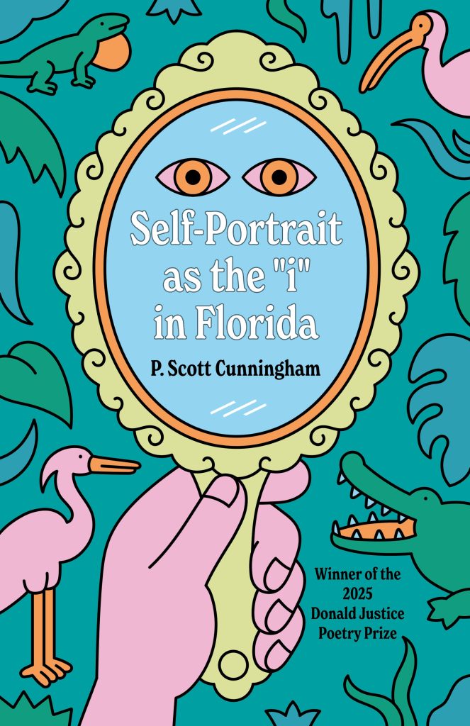 Electric Literature is pleased to reveal the cover of Self-Portrait as the “i” in Florida by P. Scott Cunningham, which will be published on April 7th, 2026 by Autumn House Press. You can pre-order your copy here.