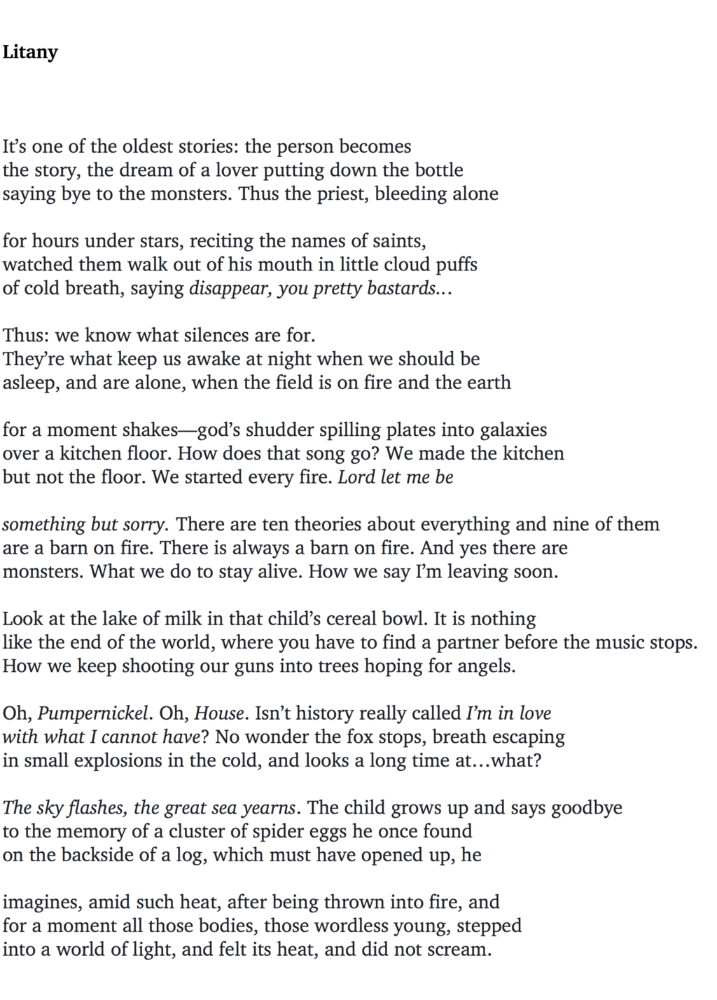 Nights broken by light. Day crumpled into stars.