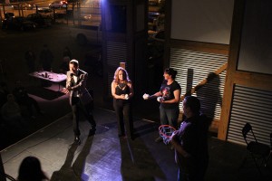 On Tuesday, I ventured to the third annual San Diego Literary Death Match, which was put on with the help of So Say We All, a non-profit artist collective. The show was held at Space 4 Art in Downtown San Diego, and it certainly lives up to its name. Inside, there is ample space for your art. They also have an outdoor stage and seating area, which provides space for your art. You can smoke in the outdoor section whilst you are enjoying the show. However, this does not always happen in San Diego due to people being “assholes” about “lung cancer.” As someone who enjoys burning the insides of their lungs and throat, I was very excited about this. There are also a couple of shopping carts that have been converted into chairs. So not only are they mobile, but they have storage space for all your crap!