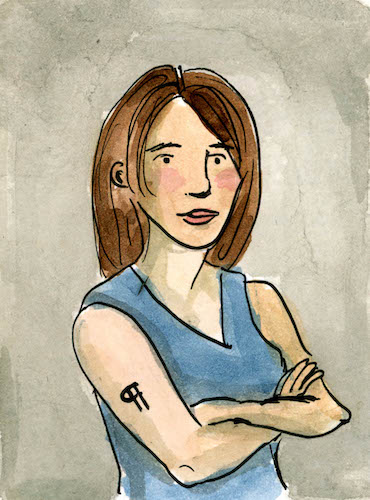 Cross your arms while wearing something stark. Remember to showcase your proofreading symbol tattoo.