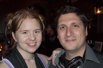 1. Katherine Moseley and Brandon Herman, organizers of the Steampunk Meetup. 2. Jean-Christophe Valtat, author of Aurorarama, who was kind enough to let me blind him with my camera and humble me with how and how fast he wrote the book — in English, a second language, and within four months. Writing in English, he said, made it quicker and easier for him to complete the novel; he didn’t obsess over his place within the tradition, and the story came as if in a trance.