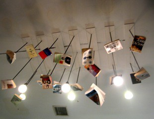 1. Jeff LeBlanc of Out of Print Clothing & Chris. Chris says Egan has made him hate PowerPoint a little bit less. 2. The McNally Jackson Cafe ceiling. HOW MANY TITLES CAN YOU RECOGNIZE?