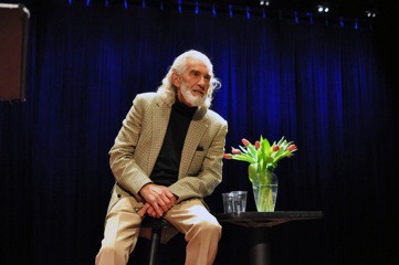 Moments before (was it after?) the no-backstage-stuff request, I’d been shooting pics of Charles Keating with a photographer from Soap Opera Digest. “I loved him in Another World,” she told me. “I’ve never seen him before,” I replied, which could have been completely untrue. His Lear-like beard-and-shaggy-mop combo impressed me. I’ll be bald before I can grow facial hair like that. Keating, contrary to the program — this I remember distinctly, because British accents mark my mind like artificial dyes ink eggshells, and because I have the program, still — read two of the selected shorts by writers Bolaño admired: “The Shape of the Sword” by Borges and “Something Like That” by Parra. The latter one gets right down to the knotted problems of philosophy: