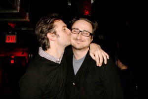 1.Morgan Meis and Todd Zuniga are two extremely well dressed men. 2. Shya Scanlon plants one on Steven Seighman, founder of Monkeybicycle.