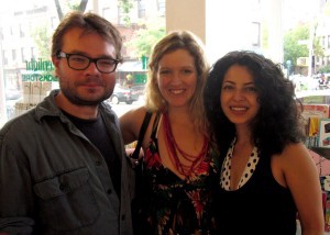 1. The crowd at Greenlight, ready to party. And listen. 2. Writer Benjamin Hale, Lisa Erickson of Scribner, & Sara Ortiz of Broadcastr.