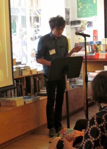 This lab culminated last night at a reading for students and their work at Greenlight Bookstore. Electric Literature, co-creative sponsor, screened Single Sentence Animations between blocks of five readers. The students, a diverse group, consisting of all ages and backgrounds, read work that ranged from scenes from their stories, exercises from class, and fake Wikipedia entries.