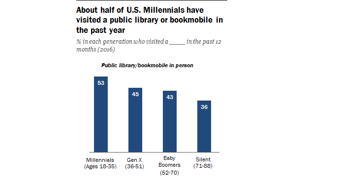 Millennials are the generation using public libraries the most