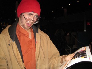 Fashion king and Murakami fan boy Isaac Mizrahi warmed the crowd with a personal anecdote. This consisted of him gushing over our man of the evening and laying clams that a seemingly commonplace relationship with a bookstore sales clerk, who had introduced him to his literary love, had grown mysteriously serendipitous and “very Murakmi-esque” through a series of rising actions that led to a possible bouquet of flowers sent to a nameless-but-intelligent sales clerk with good taste. I can’t help but agree that once I started my first Murakami novel, Norwegian Wood, I started seeing ordinary daily interactions as omens of my own unseen and fortuitous plot, man. By the way, the sales clerk works at Three Lives bookstore, which recently hosted a midnight release party for 1Q84 — did I mention that people love this dude?