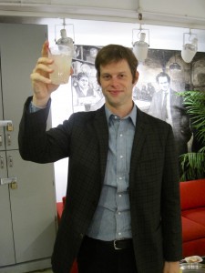 1. John Wray toasting to Murakami and elderflower martinis.