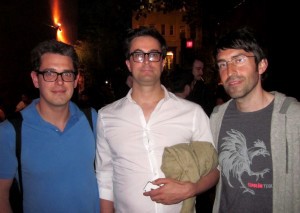 1. Three literary men and their eyeglasses: Christopher Swetala of GQ, Joel Whitney of Guernica, & Paul Morris of Bomb. 2. Reader Sara Rose Etter & Joseph Riippi, who is the author of The Orange Suitcase. Etter was telling me how although her parents are very proud of her, they don’t exactly like her work.