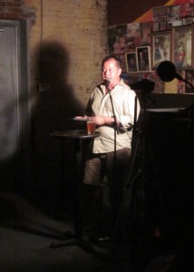 Scott McClanahan was the last reader before the break, and if I hadn’t already blown my praise wad, I would do it here. He is truly an amazing reader, and if you haven’t seen him live then you’re really missing out, and should probably at least watch him on YouTube. The piece he shared involved chanting, a story about a boy riding his bike, and walking away from the mic to get closer to the crowd. It ended with the loudest applause I have ever heard at Franklin Park, or any reading I’ve ever been to, for that matter.