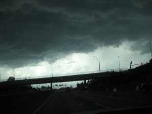 KC strangeness #3: The blue sky darkened, and thunder and lightning rained down — just as I hit the Kansas City freeway — and I wondered briefly if lit blasphemy might reap unjust deserts.