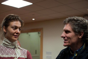 1. Tweeds and flannels await the start of the reading. 2. Chris and Phyllis, two students from Hunter’s MFA program who had recently discovered Hass’s work.