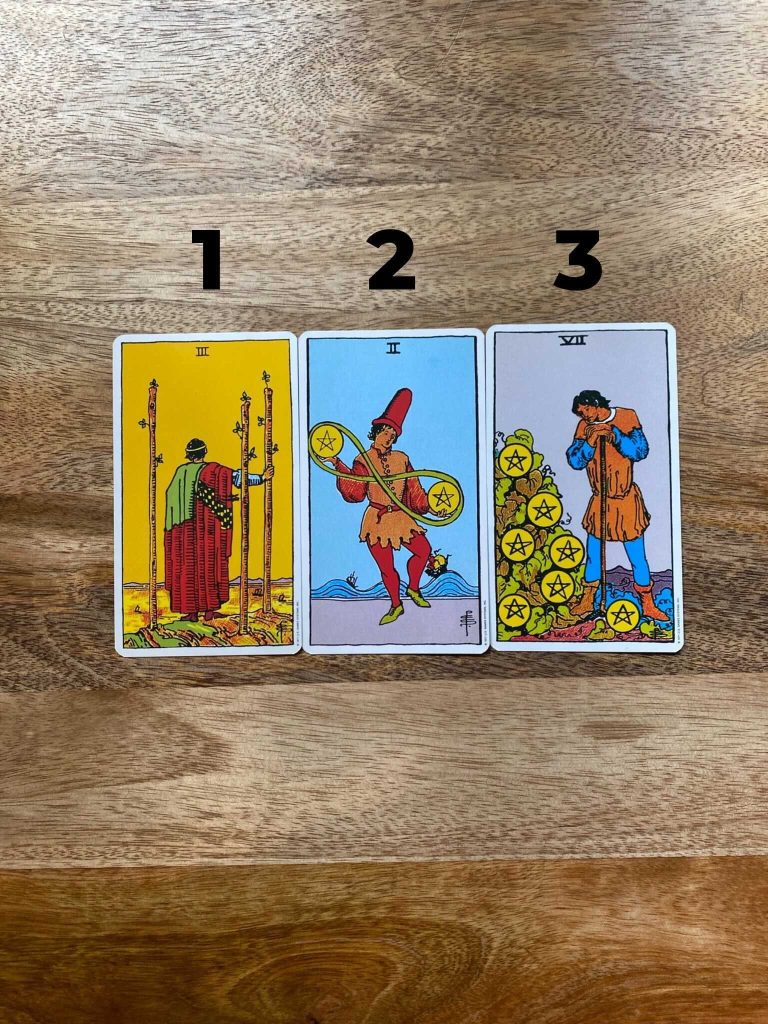 This spread is meant to tell you a bit about the central conflict of the story—what your protagonist wants, and what is getting in their way. For this prompt, your character is seeking change. They’re hoping that fate is going to step in and change their fortune for the better, and may even be feeling like they are karmically deserving of it. Or—though I certainly wouldn’t read it this way if I were reading for a person, it’s a fun way to interpret the prompt based on the other cards I’m seeing—they may be praying on the downfall of someone who wronged them, hoping that karma will step in and do its thing. This is a character who has overcome great difficulties and is just beginning to flourish. Things are finally starting to go their way, but that success is also getting in the way of the change they genuinely want. They’re experiencing the positivity of having overcome a bad situation, but they still aren’t exactly where they want to be. It may be their success is also linked to the success of the person they are hoping will be karmically punished—the character’s own success is standing in the way of their enemy getting their just desserts. This conflict is leaving them feeling trapped. They want to make a move that will push along the change they’re hoping for (perhaps they’re plotting ways to hasten their enemy’s downfall), but the circumstances, and their own internal struggle surrounding it, are making it impossible to do so. It also doesn’t help things that this character is extremely sensitive and conflict-avoidant in nature. They spend so much time daydreaming with their head in the clouds, feeling deeply hopeful (usually a good thing, but in this case, to their detriment) that fate is on their side and will take care of things, that they aren’t taking initiative or agency over their own life. Will they be able to get out of their own head enough to make the change they’re hoping for? And if they do, will that change even be for the better?