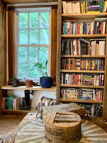 Commuter editor Kelly Luce’s woodland aesthetic featuring a historic stone mill and window view full of trees is the epitome of CottageCore.