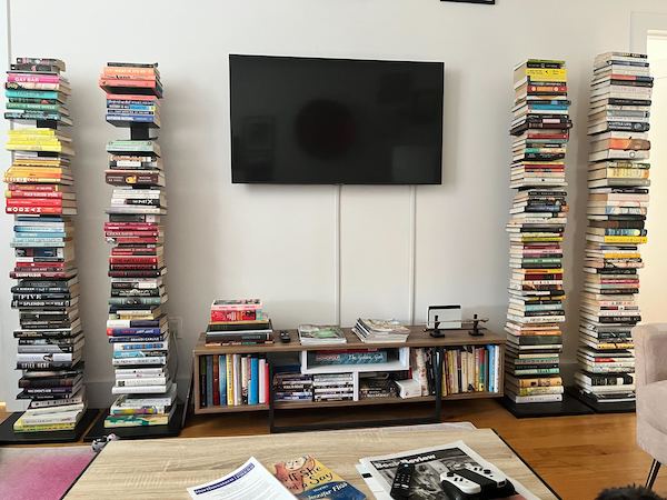 We kick off our book stacks submissions with our editor-in-chief, Denne Michelle Norris whose TV space has the feel of an altar devoted to literature.