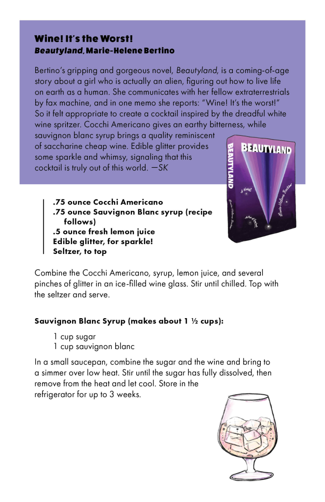 Cocktail recipe by Sammi Katz, inspired by Marie-Helene Bertino’s novel Beautyland