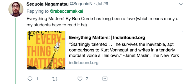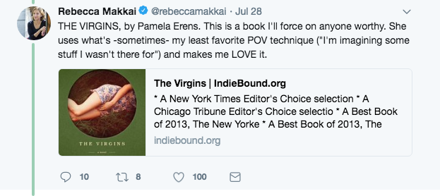 Makkai posted her own list of recommendations, each with a link to buy the book from Indie Bound.org.