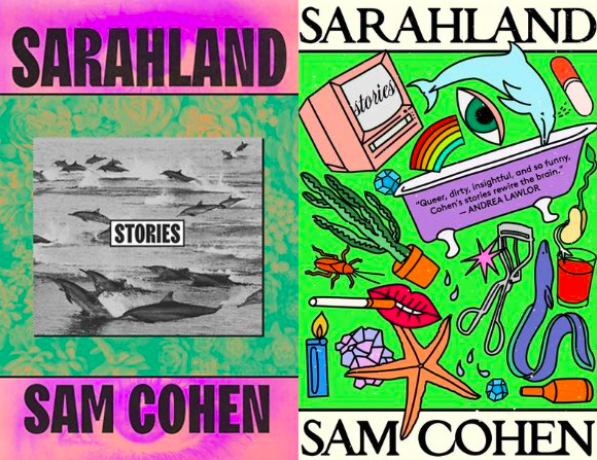 In Sarahland, Sam Cohen imagines the wildly different lives of a cast of characters who all share the name Sarah. The bright pink and green of the hardcover edition’s background is offset by the gravitas of the black-and-white photograph of dolphins leaping out of the water. In contrast, the paperback version’s colorful cartoon objects suggest the multiplicity of lives and narratives within the collection. Our readers voted for the fun and eye-catching paperback cover that taps into the collection’s playful nature.